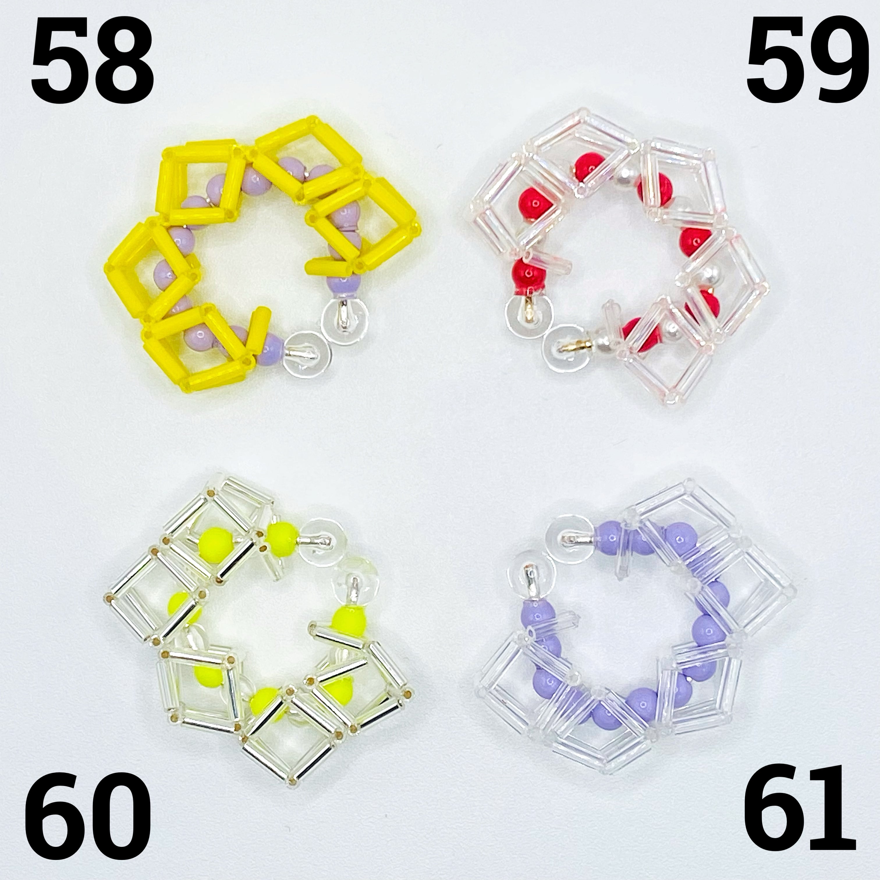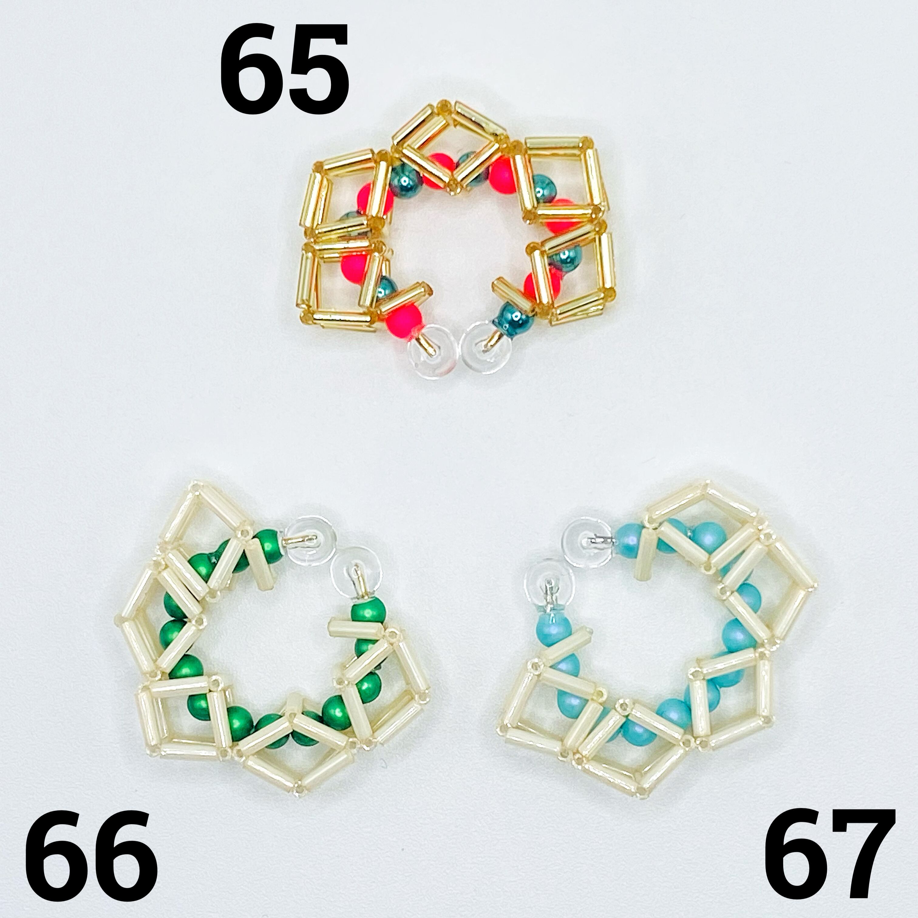 耳に触れる部分がガラスビーズとアクリルパーツとなっていますのでアレルギーの方でも安心して付けられます。